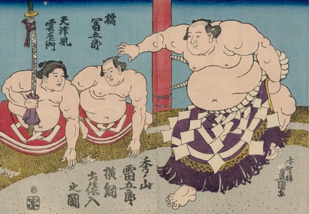 一方の常陸山は猛々しい風貌で、攻撃型力士。対照的な二人の勝負に、ファン