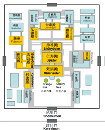清涼殿は天皇の住むところ。長い廊下を通らねば行けない。
