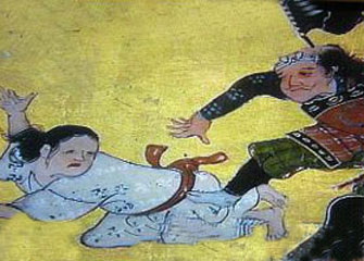 徳川方の雑兵達が、大坂城下の民衆に襲い掛かり