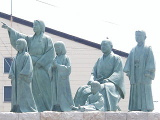 長政一家の銅像(長浜市役所浅井支所前に建つ)