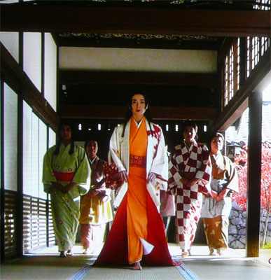『「猿」、「禿げ鼠」と、信長に揶揄されながらものし上がってきた秀吉』 「成り上がり者」という言葉が、 これほどしっくりくる歴史上の人物も、少ないのではないだろうか。 尾張国中村郷に生まれた秀吉は、足軽という最下層の武士から身を起こし、 信長に仕えることで、頭角を現していった。 三姉妹の父・浅井長政が小浜城で自害して果てたとき、 信長方の先頭に立っていた男。 信長が明智光秀の謀叛によって倒れると、即座に、山崎でその仇を討ち、 賎ヶ岳の戦いでは、対抗馬の柴田勝家を倒し、 信長の後継者としての地位を固めた。 決まってる角度へ足も手も伸ばす 森中惠美子 下克上の風潮が、時代の底流にあったとはいえ、 その潮目を読み切ることは、誰にでも出来るものではない。 人一倍、その臭覚に優れていたのが、秀吉である。 加えて秀吉は、人心掌握に長けた人たらしであった。 そうした才覚は、足軽時代に、もしくはその以前に、 相当の辛酸を舐めたことによって、磨かれたのではないだろうか。 信長や家康と違って、父祖伝来の所領や、 身ひとつで、のしあがらなければならなかった。 そこには、人知れぬ苦労があったに違いない。 しかし、孤独と紙一重である。 当時としては、珍しい恋愛結婚だとされる妻・おねを除いて、 心を許した人物はいなかったのではないだろうか。 養子を次々迎えたのも、 茶々との間に生まれた秀頼に、異常なまでの愛情を注いだのも、 官位に執拗にこだわったのも、 孤独の裏返しだったのかもしれない。 『大河ドラマ・第12話・『お江ー茶々の反乱』 みどころ』 ある日、三姉妹の部屋に膨大な数の着物が届けられた。 送った相手は明らかだった。 江 「こんなことができるのは、あの者しかおりませぬ・・・!」 初 「あの者とは・・・?」 江 「猿にきまっておりまする!」 初 「猿、のう・・・。」 茶々(宮沢りえ)は、着るつもりは全くなく、 既に、「秀吉の家来が持っていった」という。 侍女の着物を着た茶々は、 だが、「既に捨てた」と言う。 茶々 「あの着物は、母上が私たちのためにあつらえくさだれたもの。 あなたは、母の思い出まで捨ててしまわれたのですよ!」 秀吉 「そこまでは思い至りませなんだ。・・・申し訳のないことをしてしまいましたなあ」 その秀吉のとぼけた様子に、激怒した茶々は、徹底的に秀吉と対決する決意をする。 秀吉からのものは、決して手をつけないことにしたのだ。 とはいえ、安土城に住んでいる限りにおいては、 すべては秀吉からのものばかりで、 煎じ詰めれば、三度の食事も秀吉からのものだった。 茶々は、食事にも手をつけなくなった。 茶々の気持ちがわかる江(上野樹里)も、箸を置いた。 そうなると、初(水川ありさ)も食べるわけにはいかなかった。 それからの三姉妹は、何を出されても手をつけようとはしなかった。 守るものしっかりあって青テント 井丸昌紀 秀吉 「飯を食わぬ?」 三成 「はい。朝餉も夕餉も、箸をつけようともなさいませぬ」 秀吉 「・・・着物にも袖を通しておらぬと言うたの」 三成 「は。すべて片付けさせたご様子にて」 秀吉 「・・・うふ、ふふふ・・・戦いと同じじゃのう」 三成 「戦・・・?」 秀吉 「相手がしたたかなほど、歯ごたえがあるというものじゃ。 さてさて、ならば次の策を練るとするかの・・・」 どちらの意地が勝つか。 まさに、秀吉と茶々の意地の戦いだった。 辛口の笑顔でボスは引き締める 三浦 憩 しかし、茶々は、別のところで苦しんでいた。 秀吉と戦う自分は、いくら空腹でも我慢できる。 だが、自分に付き合う妹たちが、空腹に堪える姿を見るのが忍びなかったのだ。 茶々は、秀吉の命じるままに実行する三成(萩原聖人)に、腹を立てると、 睨み付けて言う。 茶々 「三成と申したな。そなたは、命じられれば、何でもするのか?」 その言葉は、三成の心に重くのしかかった。 そんなとき、三姉妹は千宗易(石坂浩二)に茶室に呼ばれた。 宗易が出した饅頭に、初はかぶりついた。 だが、茶々と江は、決して手を出そうとはしなかった。 宗易 「では茶々様には、お茶だけ差し上げるといたしまひょ」 茶々 「ありがとう存じます。 おいしゅうございます・・・」 宗易 「茶菓子ばかりやない、そのお茶かて羽柴様のものですわ」 茶々 「(慌てて茶碗を置く)」 宗易 「いらん意地張るのはやめなはれ。 何より、食べ盛りのお妹君がかわいそうやと思われまへんか?」 初 「(口のまわりは餡だらけ)・・・」 江 「(ぐう、と鳴る腹)・・・」 茶々 「それは・・・わかっております。」 宗易 「そうですな、わかっておいでや。ただ、お気持ちにどうもケリがつかん・・・」 悩んだり迷ったりした若かった 柴本太郎 江 「・・・私たちをこちらへお呼びになったのは、秀吉に命じられてのことでしょうか?」 宗易 「その通りにございます。私は羽柴様の茶頭にござりますれば」 茶々 「もともとは伯父・信長に仕えていた方、あまりに節操がないのでは?」 