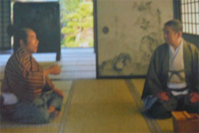 信長の茶頭だった宗易(石坂浩二)を、新たに自分の茶頭に迎え、