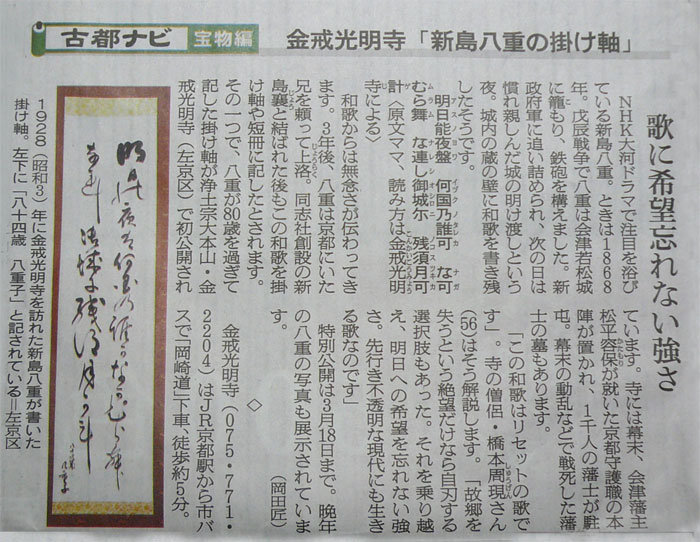 その一つで、八重が80歳を過ぎて記した掛け軸が、