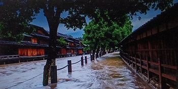 栗橋宿の南側は瞬く間に海のような景色へと変わり、大量の船や家屋が濁流