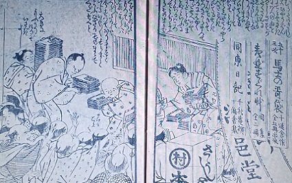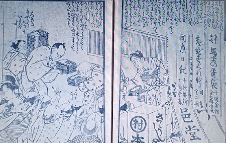 「的中地本問屋」(あたりやしたじほんどんや)十返舎一九作画、 (享和2年(1802)版元・村田屋次郎兵衛)