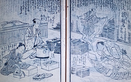 蔦重方に寄宿してドウサ引きした十返舎一九作、「本のできあがるまで」を