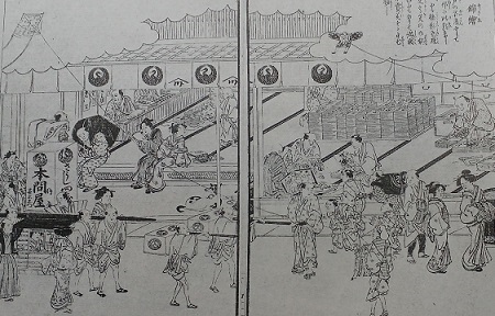 ⑥ 販売(店頭売り、行商、貸本屋へ) 前年の霜月頃より新作販売というから、歌舞伎の顔見世興行などと同じ11月