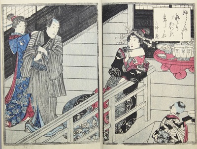 「人情本の祖・為永春水の絵」 自らも貸本屋営んでいた為永春水などは、殊にそうした読者の反応に敏感で あった。一時、二代目・南仙笑楚満人を名乗った春水は、筆耕を業としてい
