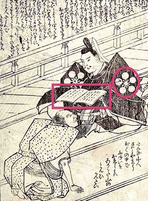 定信が将軍家斉に拝謁する場面を描く 「将軍家心得十五か条」を献上、定信の家紋「梅鉢」が見える。 「江戸のニュース」