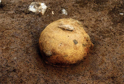 ≪長州藩の前田砲台跡で行われた発掘調査で見つかった砲弾。