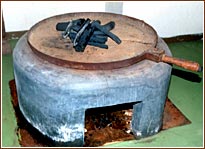 ≪上下に炭を入れ、中に入れた水入りの缶で釜の温度を計った≫