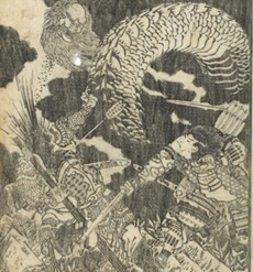 「里見八犬伝 行徳入江の場」 歌川豊国(三代) さて馬琴は武家出身で几帳面な性格の努力家であり、『南総里見八犬伝』や