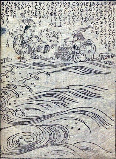 釣舟に女の化け物が飛び込んできた。首から下が鯉で、顔は17,8歳のくら