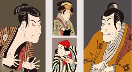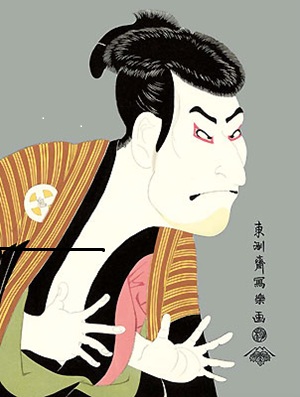 舞伎役者をモデルにしたことで注目された。要するに役者の似顔絵であるか