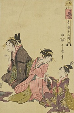 したものだったようです。中央の煙管を持った遊女はおそらく花魁、襷掛けの