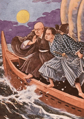 ”二つなき 道にこの身を 捨て小船 波立てばとて 風吹けばとて”