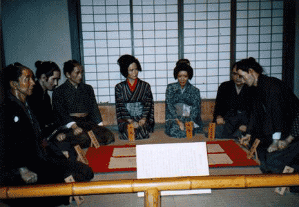 左から入江杉蔵、吉田栄太郎、松浦松洞、文、滝、富永有隣、松陰。