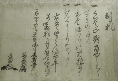 豊前国に入封直後、求菩提山の山伏たちに出された命令書