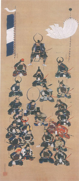 大量の旗指物を持たせ、後方の茂みに伏せさせた。