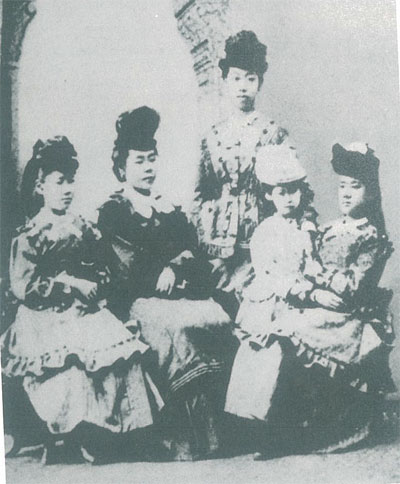 左から、永井繁子、上田貞子、吉益亮子、津田梅子、山川捨松