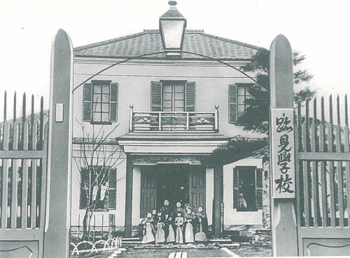 学校も初期のころは、江戸時代の寺子屋の看板を、