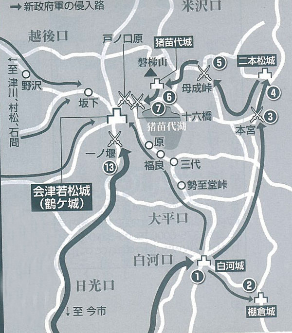 母成峠を突破し一気呵成に若松城に迫った。