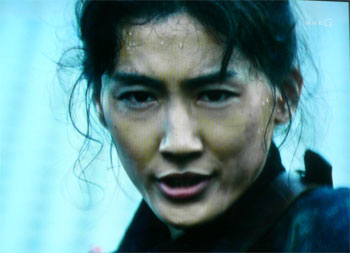 薙刀をふるって城外で奮戦。