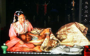 清盛の前に姿を現した祗王は、涙をおさえて、