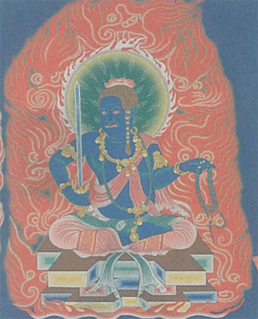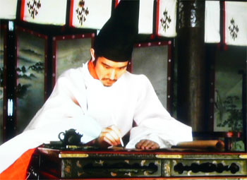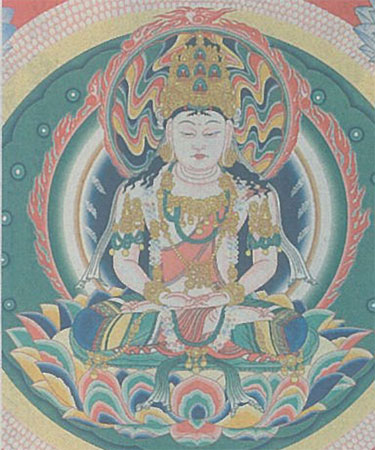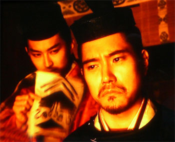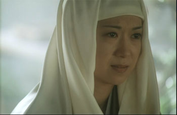 まゆ毛の白い、ふたまたの杖をついた僧侶が現れて、