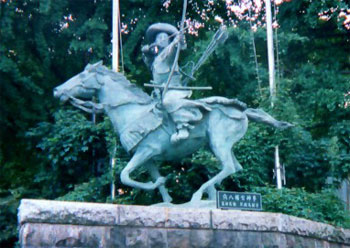 武士と称されるには、 ① 馬に乗った状態で弓を射ることができること。 ② 武芸の専門家であるのを自他ともに認めていること。 ③ 朝廷に関わる公的役割を果たしていること。 たとえ、武芸に秀でていても、 公的役割を果たしていなければ、武士とは言えず、 山賊や海賊は、もちろんこれに該当しない。 流鏑馬像(穴八幡宮) やがて、各地で武士団が形成され、 地方で勃発した反乱を機に、その存在感を高めていく。 天慶年間(938-947)、東国では、平将門 西国では、藤原純友の乱が起きる。 これは武士による反乱であり、朝廷は大きな衝撃を受けた。 貴族は、殺生を生業とする武士を蔑んでいたが、 朝廷には、自前の軍備が十分になく、 「武士の乱には、武士で対処しなければならぬ」 ジレンマに気づかされるのである。 非常階段に舌やら毛布やら 森田律子 結局、この乱は武士によって鎮圧され、 この時、活躍した源氏・平氏が 以降、朝廷で重用されていくこととなる。 こうして源平両氏は、将門の乱から十世紀後半にかけて、