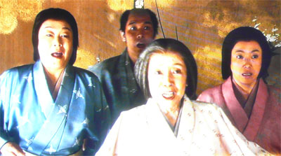 秀吉(岸谷吾朗)は、家族を大坂城に呼び寄せ、三姉妹と合わせ、
