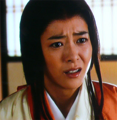 束帯を着けたまま、大坂城の茶々(宮沢りえ)のところに駆けつけた。