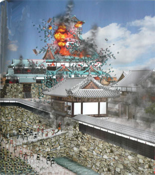 できごころ「ニーチェの言葉」買うてもた 浜田さつき 戦国の常として、敗北した柴田勝家軍からは、 見限った家臣たちが、どんどん脱落していった。 天正11年(1583)4月21日のうちに、勝家本人は北ノ庄城に帰還したが、 勝家の主力1万5千の将兵は、わずか3千ほどにまで減っていた。 もっとも、武田勝頼が滅亡したときには、 手勢数名ほどだった、ことから見れば、 勝家はかなり人望が、厚かったというべきかもしれない。 おむすびの転んだ方について行く 本多洋子 4月22日、秀吉は越前府中の前田利家のもとを訪れ、 彼を秀吉隊に合流させた。 そして翌日の4月23日、秀吉は北ノ庄城を包囲し、軍議を行う。 秀吉は、 「勝家が投降するのを待とう」 と家臣たちに、はかったが、 「池に毒蛇を放つがごとく、庭に虎狼を飼うがごとき所業」 と反対され、断念した。 情報にかきまわされぬように生き 上山ヒサヲ 勝家は同日の夜、覚悟の酒宴を行った。 股肱(ここう)の臣のみ80人ほどで、 天主から織田信長からの下賜品などを、引き出して陳列したという。 これは一ヵ所に整理することで、 秀吉方の足軽たちが乱入した際に、 略奪で散逸するのを避けるためだろう。 繰り返し進行形を消している 清水すみれ 酒宴は盛大で、 「珍肴珍菓(ちんこうちんか)、山のごとく前に置き、 身分や男女の上下なく、酒を酌み交わした」 (柴田退治記)と、 秀吉サイドの記録にも残されており、 秀吉側とは、夜間の「休戦協定」ができていたと見られる。 今日という一日だけのショータイム 北原照子 勝家の最後の晩餐は深夜には終わり、各人は、勝家とお市を残し、 それぞれの持ち場に戻った。 お市の方は、 両者の和睦が破棄されれば、勝家と一緒にいる義務も理由もない。 勝家も、 市は自分の意思で、わずか9ヶ月、一緒に暮らしただけの、 柴田勝家とともに、死ぬことを望んだのだ。 悔いのない今日を重ねてから逝こう 有田晴子 なぜお市が勝家と死ぬことを望んだか? 確かなことは不明である。 「秀吉を嫌悪した」と説明されることが多いが、 「秀吉が嫌い」から「勝家と一緒に死ぬ」では、 話がつながりにくい。 そこまで秀吉が嫌いならば、出家すれば済むことなのだ。 正解はチンして混ぜるだけのこと 藤本秋声 『さらぬだに 打ちぬるほども 夏の夜の 夢路をさそう 郭公かな』 もう一度、お市の辞世の句を検証してみる。 「郭公(ほととぎす)」 とは秀吉のことをさす。 ホトトギスが、雛をウグイスに育てさせる『托卵(たくらん)』については、 万葉の時代からよく知られていた。 「われわれは、子供たちを秀吉に託して、ともに死のう」 といった意味になる。 ”夏の夜の、夢路はかなき、あとの名を 雲井にあげよ、山ほととぎす” 「夢路」を、勝家が受け継いでいるところである。 「夢路」とは、「夢の中で、ゆきかう道」の意味である。 夢で行き交うもなにも、 市と勝家は、その場で、向かい合っているのだから、 本来の贈答歌の常識から考えると、この箇所はおかしい。 踏み切りで向き合っているモアイ像 北村幸子 つまり、 「市と勝家が共通して知っていて、しかもこの世にはいない人物を詠っている・・・」 とみるのが、妥当な解釈である。 二人はこの贈答歌では、誰を念頭においているのだろう・・・か? 信長かあるいは、市の前夫・浅井長政か・・・ いずれにせよ市は、勝家に対して、 先に極楽浄土へ行った者への想いを、歌で伝え、 勝家はその想いを歌で、答えたということになる。 さざ波をつまんで捨てるピンセット 井上一筒 ちなみに柴田勝家と秀吉との間で、 お江たち三姉妹は、 秀吉が引き取って、育てることで合意が成立していた。 そして、天正11年4月24日、 勝家は天主に放火して、お市とともに自害したのである。 『「お江ーわかれ」・あらすじ-第10回の見どころ』 北ノ庄城では、勝家(大地康雄)が、市(鈴木保奈美)と三姉妹との、 最期の別れをしていた。 勝家 「・・・すまぬ。そなたたちとの約束を守れず、 小谷の時と同じ思いを味わわせることになってしもうた・・・。 思えば、この半年が、わしの人生の花であった・・・。 思いもかけず、美しき妻に恵まれ、娘を三人も持つことができた・・・」 そういうと、勝家は市と三姉妹の顔をみつめると、 「さらばじゃ」 と部屋から出ていった。 市 「追うでない!・・・武士にとり、敵に首を挙げられるほどの恥はないのじゃ・・・!」 後を追おうとした三姉妹を、市が制する。 係累を断ってさまよう武士の剣 上田 仁 勝家は、家臣たちと天主の最上階で、最期の宴を賑やかに催した。 部屋に残った市、茶々(宮沢りえ)、初(水川あさみ)、江(上野樹里)は、 秀吉(岸谷五朗)からの遣いを待っていた。 茶々 「小谷と同じことになるのでございますね・・・。」 市 「こたびは違う」 茶々 「・・・・・え?」 市 「小谷の時と異なるのは、そなたたちは城から逃れ、母は残るということじゃ」 市の言葉に泣き崩れる三姉妹。 適当な言葉が出ない日