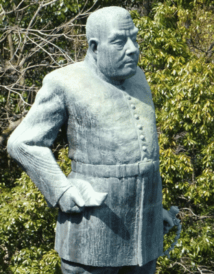 「西郷どんの知っているようで知らないこと」 クイズ番組で一枚の写真(西郷隆盛)がでてきて「この人物は誰か」の問いに 解答者は、何舐めてるんじゃねぇと言わんばかりに「西郷隆盛」と答える。 これは番組上では正解。だが実際は間違い。 「西郷隆盛らしき人」と答えなければ正解とは言えない。 写真嫌いの西郷を証明する実物の写真は一枚も残っていないのだから。 隆盛の孫・西郷吉之助の証言しています。 「明治天皇は自身の写真を二度も祖父に送り、写真を撮って差し出すように 仰せられたのにもかかわらず、陛下のために命を捨てるつもりでいた祖父が お答えしていないのだから、写真は存在する訳がない」と。 正解は一つだけだと譲らない 津田照子 西郷隆盛の上野の銅像は、西郷が没して21年後の明治31年12月8日 に除幕式が行われた、これに列席していた西郷の妻・イトは銅像を仰いで 「宿んしは こげんなお人じゃなかったこてぇ」と洩らした。 それが直線的に伝わり、顔が違うとの誤解のまま世間に広まった。 彫刻家・高村光雲はもちろん西郷の顔は知らない。 しげみち 光雲が銅像製作のモデルに使った素材は「弟の従道」と 「キョッソーネの描いた肖像画」と言われている。 犬を連れ、短い筒袖の着物姿で立っている。 へこおび 無造作に結んだ兵児帯に短刀を一本さし、煙草入れを下げた草履ばき。 この気取りのない格好は、多くの人を驚かせ、西郷の人気をさらに高めた。 しかし、イトは喜ばなかった。 本件のわけ知り顔を陽にさらす 藤井孝作 「うちの人は、たとえ私学校の若い人がきても、袴をつけて会う人だった。 それがあんな無作法な姿では、見て下さるかたに申し訳ない」 と西郷の品格を落としめる姿格好に不満をもらしたのである。 当初のモチーフは、「陸軍大将軍服着用の騎馬像」の計画であったという。 しかしこのプランは、朝敵になった西郷が名誉を回復したとはいえ、 陸軍大将の官位で騎馬像を建立すると西郷人気を復活させてしまうという 理由から製造にかかる直前に沙汰止みになり、最終的に現在の姿になった。 めんどうになってきたのでみな許す 橋倉久美子 そこには西郷の高い人気に、反政府的気運を醸成しかねない動向を逸らし、 西郷から武人としての牙を抜き、犬を連れて歩く人畜無害なイメージを 民衆に定着させようとする、政治的な意図が働いていたと見られている。 ところが考えてみれば、西南戦争終結から20年余りが経ったとはいえ、 庶民の西郷への人気は、絶大であったことを逆に証明したのだった。 ノックしてから三十七年待たされる 河村啓子 鹿児島の西郷像 高さ5.2メートル (彫刻 安藤照) 上野の西郷像から39年後の昭和12年に建立した鹿児島の西郷像は、 陸軍大将の正装を着用している。 すでに完成当時は、軍服姿にクレームがつく時代ではなくなっていた。 モデルは西郷の孫・隆治と言われ、西郷に最も近似した顔つきであるという。 実際の顔が不明というのに、「最も近似した顔」というのも可笑しな話だが、 西郷の顔を知るものが、よく似ていると言うのだからそうなのだろう。 うんうんうん決して反対はしない 立蔵信子 山形県酒田『南洲神社』の西郷座像 南洲神社は、南洲と呼ばれた西郷隆盛を祀る神社で、鹿児島県下竜尾町、 沖永良部島、宮崎県都城市、山形県酒田市、全国に4箇所存在する。 戊辰戦争において庄内藩は、官軍に激しく抵抗したため重い処分を覚悟 していたが、西郷の公明正大な極めて寛大な処分となった。 この徳に感じいった庄内藩の菅実秀(臥牛)は、明治8年自ら旧庄内藩士と 共に鹿児島を訪れ、西郷に感謝するとともに敬愛の教えを受けた。 鹿児島県武西郷屋敷にある両者が、凛と向き合う座像は、その時の 「徳の交わり」を表したものである。 後にその教えを受けた人達の手記を集め『南洲翁遺訓』を発刊した。 パッチワークのひとつに亡母を語り継ぐ 田中博造 沖永良部島で犬と散歩する西郷隆盛像 沖永良部島は鹿児島県に属しているが、鹿児島から約450km、沖縄から 約60kmにある離島である。 西郷は薩摩藩の時の権力者・島津久光との確執から、この沖永良部島へと 流され、1年7ヶ月に及ぶ牢獄生活を余儀なくされた。 そのため、実際には犬と散歩など出来る環境にはなかったわけで、牢獄での 生活に体重は半分ほどに落ち、無残に痩せ細り生きる希望も失いかけていた 西郷だが、島民の暖かさに救われた。それを表すように銅像の西郷の表情は、 ふくよかで優し気で、この地の人の暖かさがにじみださている。 そして島に滞在中は、島民たちに世話になったお返しにと、西郷は島の若者に 聖賢の道について教えたり、飢餓の時のために豊作時に穀物を高倉に保存して おき、凶作時に皆に支給する「社倉法」なども伝授した、と伝わる。 この時に、西郷のモットーとなる「敬天愛人」の心を体得したと伝わる。 蟻と目が合った蔑んだ目だった 大海幸生