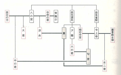 女三宮の息子である薫はたびたび、母の様子をうかがいにここに訪れている。
