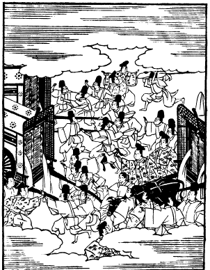 まだ辺りは暗い、人目につかないよう、源氏は、粗末なみなりで、