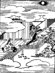 そして源氏が寝殿近くから覗こうとしているところへ、