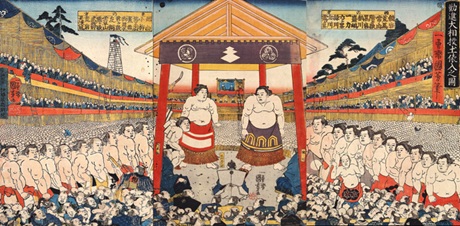そんな連中だから、力士の勝敗をめぐって興奮の頂点に達し、あちこちで掴み